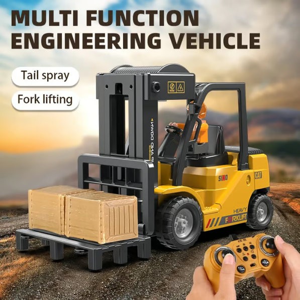 11-Kanal-Steuerung: Vorwärts/rückwärts fahren, links/rechts drehen, Palette hoch/runter heben – volle Funktionalität wie ein echtes Hebezeug.